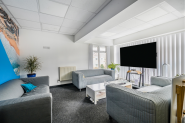A two storey modern building comprising two office suites on the ground floor and a single first floor suite. The building is accessible and includes a lift together with parking and electric charging points.