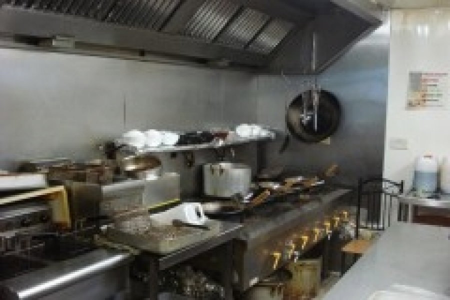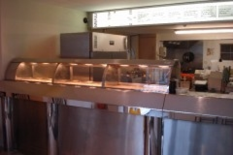- Takeaway section, kitchen/prep area, stockrooms, WC and parking