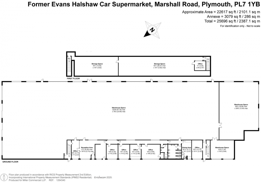 The prominent position of this corner site provides a strong presence for any business. The principal building is a widespan steel portal frame construction with dual pitched roof providing daylight panels. The warehouse has a min eaves height of 4.10m rising to 5.24m. LED lighting is provided throughout. To the eastern elevation, roller shutters have been replaced with glass fronted openings. To the south, three roller shutters provide access to the warehouse. To the western elevation, the building has been subdivided and provides further roller shutters accessed from a gated compound. There is an area of offices (with welfare) fronting Marshall Road, with glazed windows, and a mezzanine with low eave which provides additional storage.